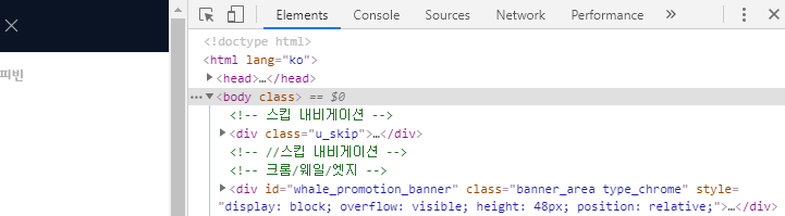 1. 사이트에서 F12를 눌러 개발자모드 켬