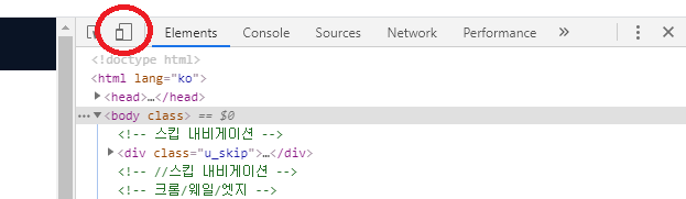 3. 저 태블릿/스마트폰 모양같은것을 클릭하고 F5를 눌러 새로고침