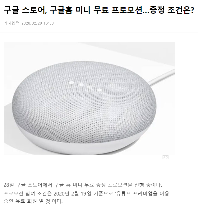 [구글 홈 미니 무료 증정 예외]