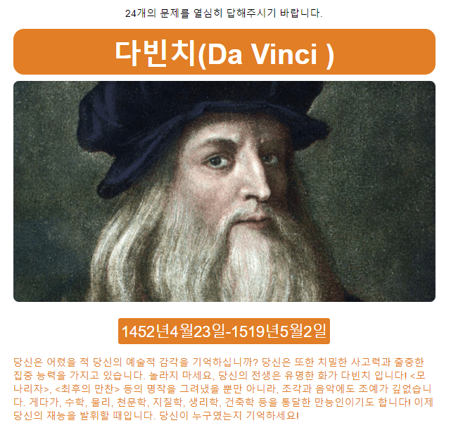 24개의 문제를 열심히 답해주시기 바랍니다.