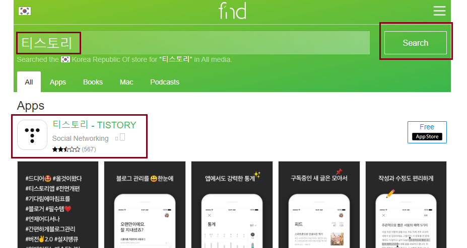 2. 검색창에 찾고싶은 앱이름을 적고 Search클릭