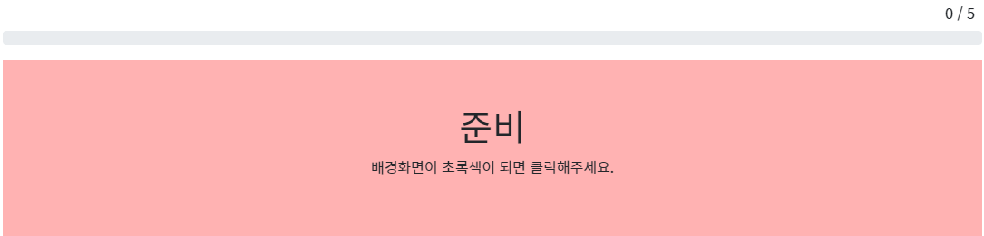 분홍색의 준비화면에서 초록색의 클릭화면으로 넘어가는 순간을 클릭