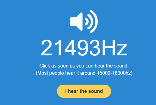 소리의 hz가 점점 떨어지면서 소리가 들릴때 "I hear the sound"를 클릭하면 됨