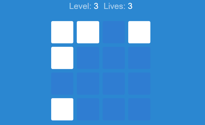 4. 네모칸이 흰색으로 변했을때 기억했다가 없어진후 외운대로 기억하여 클릭