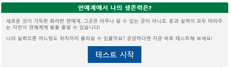양성게임 같은 심리 테스트! 나는 연예계에서 몇 일이나 생존할 수 있을까?