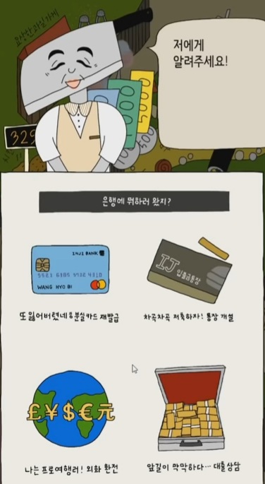 3. 이런식으로 등장인물과 함께 질문을 하는데 편하게 클릭
