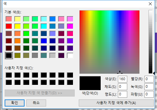 이 외의 색상을 쓰고 싶을땐 색을 더블 클릭할시 아래 그림처럼 창이 뜨며