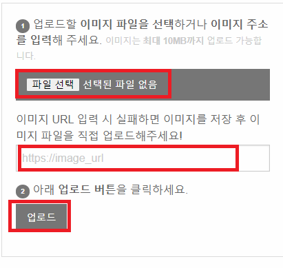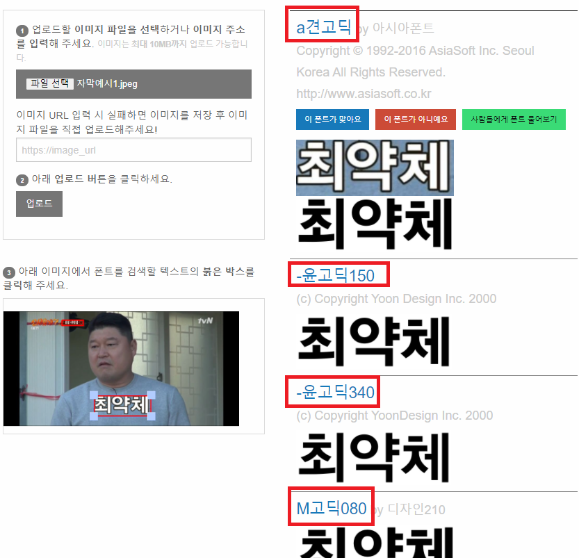 본인이 찾고싶은 폰트의 이미지 파일을 선택하거나, 주소를 입력