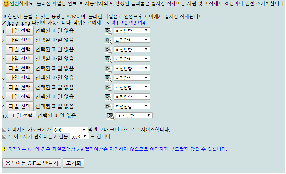 웹에서 간단하게 여러장의 이미지를 하나의 움직이는 GIF로 만드는 웹페이지 입니다.