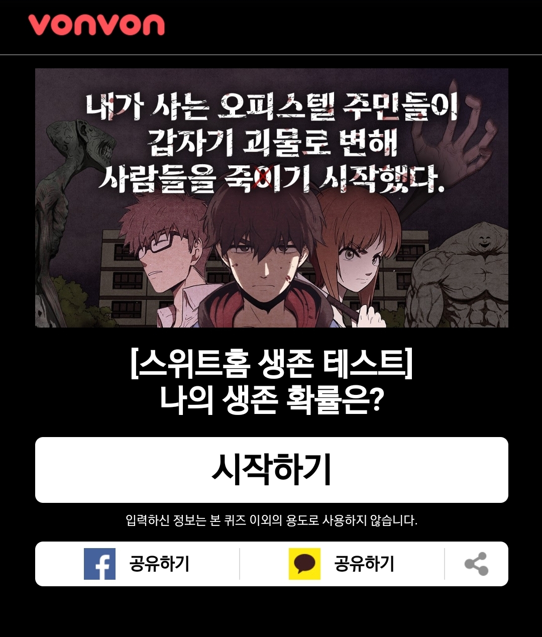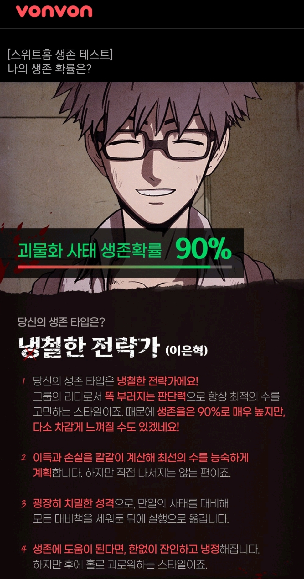 [스위트홈 생존 테스트] 나의 생존 확률은?