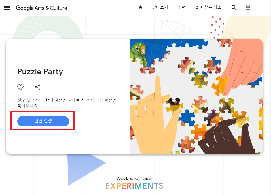 친구 및 가족과 함께 예술을 소재로 한 조각 그림 퍼즐을 맞춰보세요.
