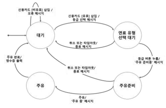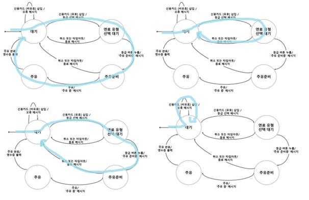각 테스트가 시작 상태인 ‘대기’에서 시작하여 다시 시작 상태로 돌아오면 끝난다고 가정할 때, 최소 몇 개의 테스트가 필요한가?