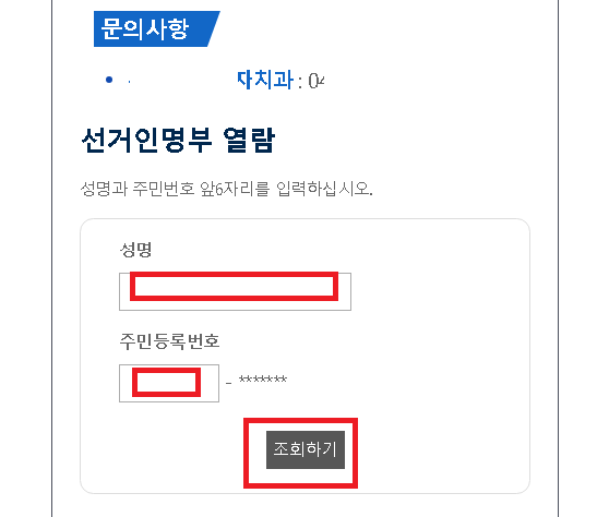 2. 주민번호 앞자리하고 이름 입력 후 조회