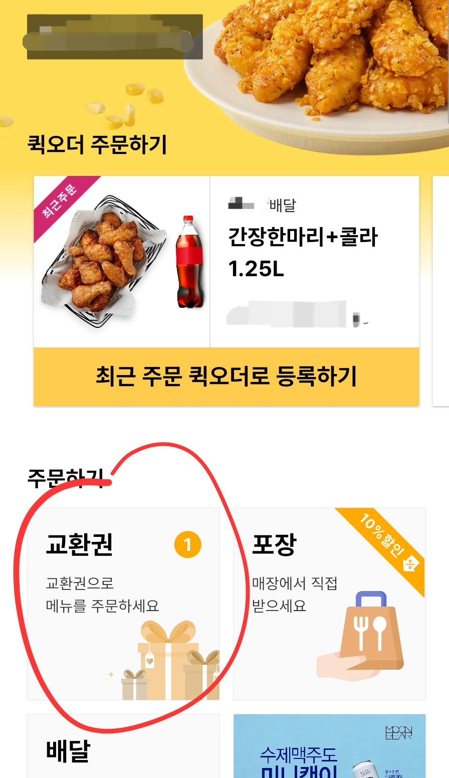 교촌 어플에서 쿠폰을 클릭해서 입력하니깐